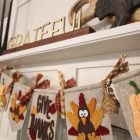 The banner features a merry parade of turkeys. These plump, festive birds are depicted in warm, earthy tones, capturing the spirit of the harvest season. Interspersed among the turkeys are bountiful illustrations of food, symbolizing the abundance and generosity at the heart of Thanksgiving. There’s also fall foliage in a cascade of fall colors, reminiscent of a crisp autumn day. These elements come together to create a visual feast as rich and inviting as the Thanksgiving meal itself.